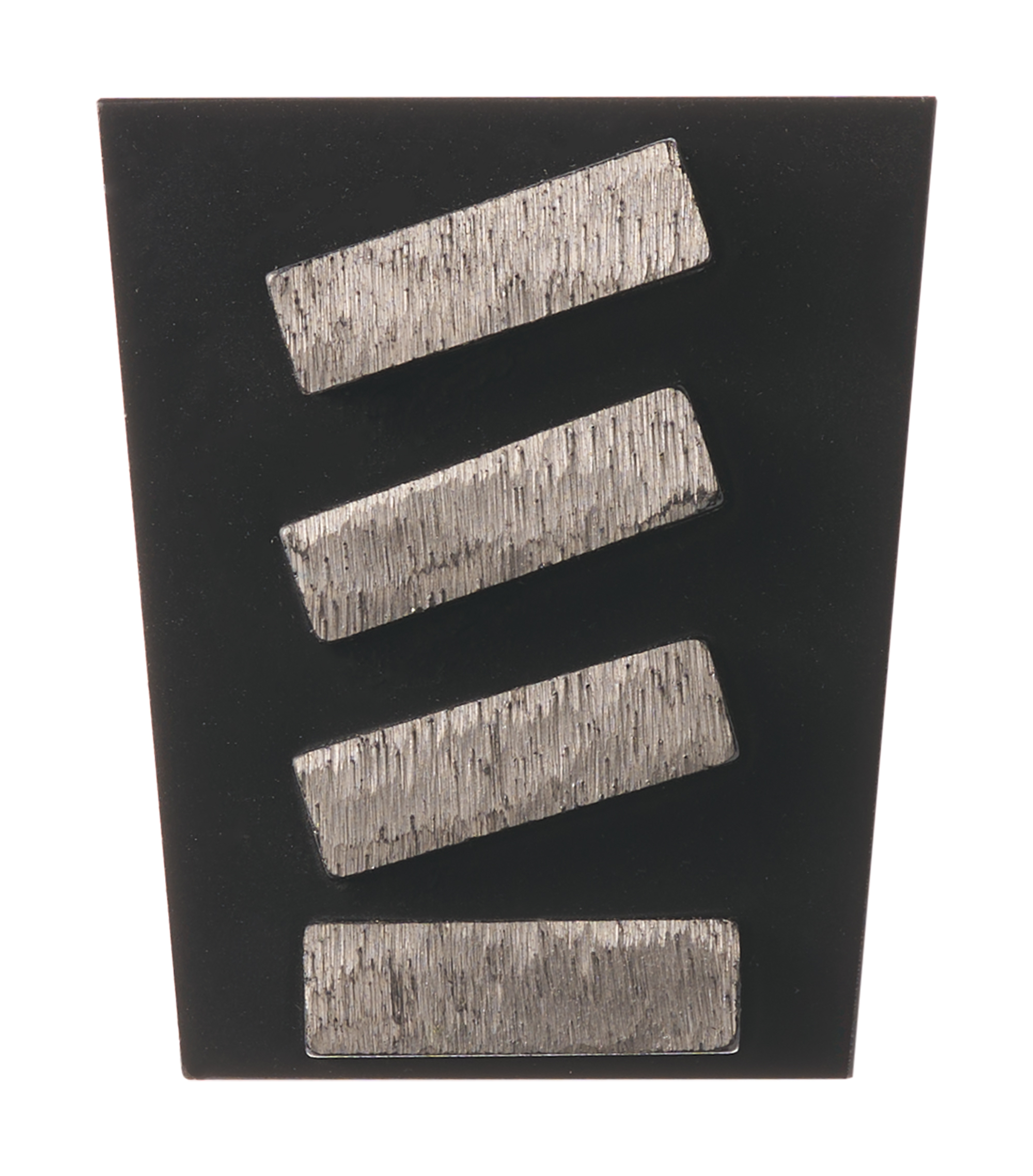 Diamond Wedges with four segments are available with two different bond types. Black wedges are the hardest of the bonds suitable for freshly laid or abrasive concrete. White wedges are a medium bond suitable for general grinding of medium to hard concrete.